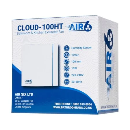 The Air6 Cloud-150HT Extractor Fan combines sleek aesthetics with powerful functionality, making it an essential addition to modern bathrooms and shower rooms. Equipped with an adjustable Humidity Sensor (adjustable from 50% to 90% RH) and Timer (1 to 30 minutes), the fan provides advanced control over indoor air quality.